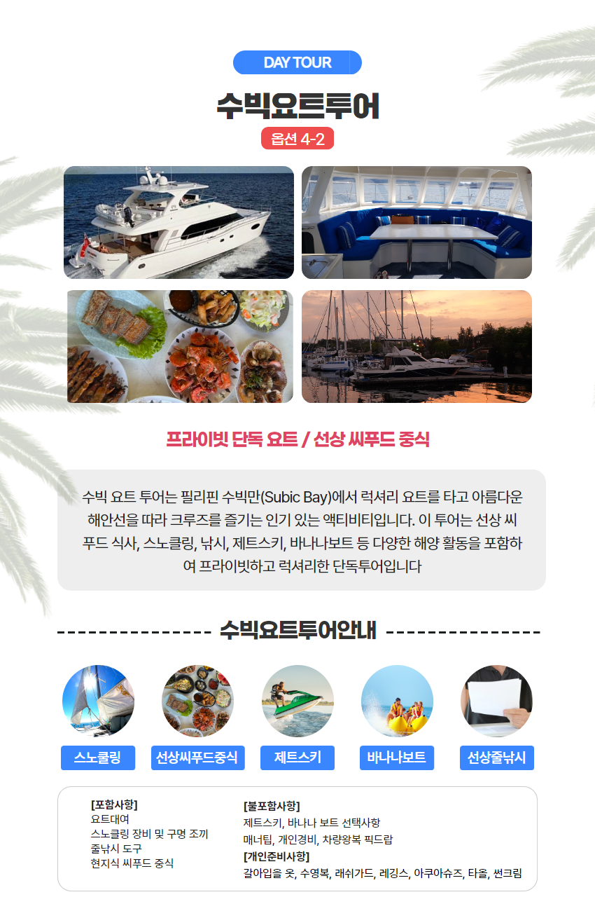필리핀 수빅 프라이빗 단독 요트투어 (6인추천)